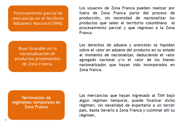 • Los Usuarios Industriales de Bienes y Usuarios Industriales de Servicios, sólo podrán estar domiciliados al interior de las Zonas Francas y no podrán tener sucursales ni agencias en ningún otro lugar del territorio nacional.